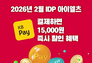 2026년 2월 IDP IELTS 시험을 국민카드 KBPay로 결제하면 아이엘츠 시험 응시료 15,000원 즉시 할인 혜택을 드립니다.